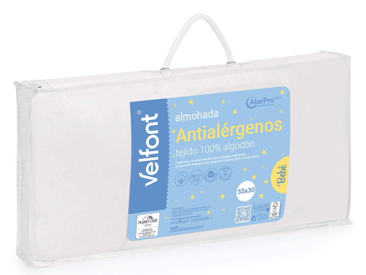 Almohada de Fibra Antialérgenos para Cuna Velfont con protección probiótica AlerProTECH