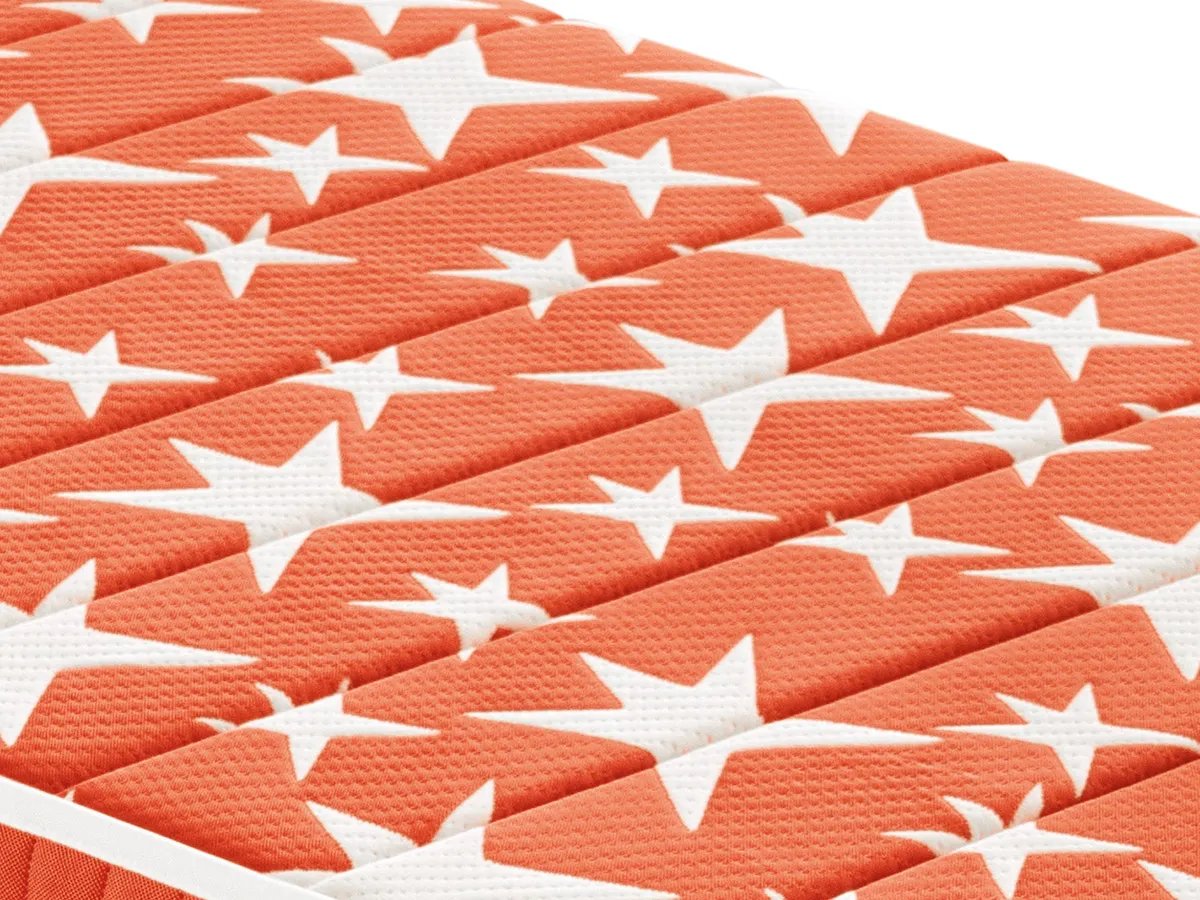 El Colchón Orange de Ágatha Ruiz de la Prada para La Premier está pensado para habitaciones juveniles con energía: un diseño naranja con estrellas blancas y una construcción que combina confort y soporte. En su interior incorpora núcleo HR de alta densidad y una capa de Visco Gel para una acogida más agradable y una sensación más fresca.